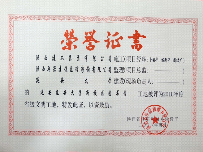 | 2018年度延安市建設(shè)工程質(zhì)量安全生產(chǎn)先進集體 |