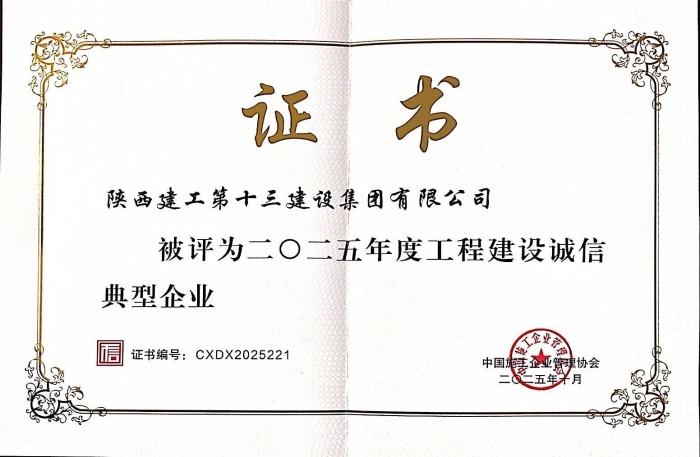 日前,從中國(guó)施工企業(yè)管理協(xié)會(huì)傳來(lái)喜訊,集團(tuán)獲評(píng)2025年度工程建設(shè)誠(chéng)信典型企業(yè)。